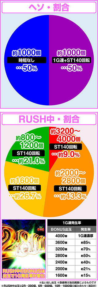 また、RUSH=LT突入時は必ず1G連が発生して、出玉800〜4000個の「VコネクトBONUS」を獲得できる点も満点評価。RUSH突入時は初当りの出玉1000個+1G連を必ず味わえるというのは嬉しい限りです!