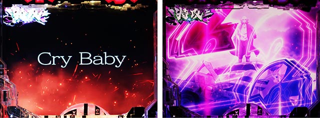 テンパイが成立すればCry Baby予告が連動する。あおりエフェクトが紫ではなく赤なら成功!?