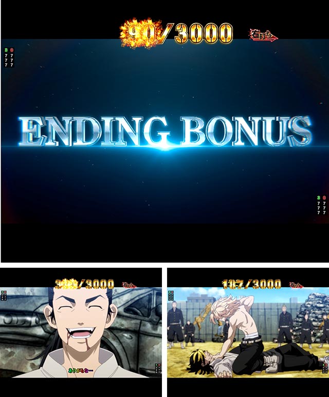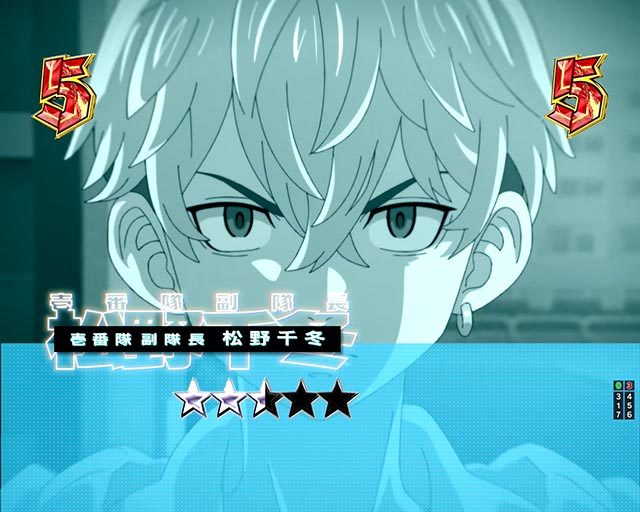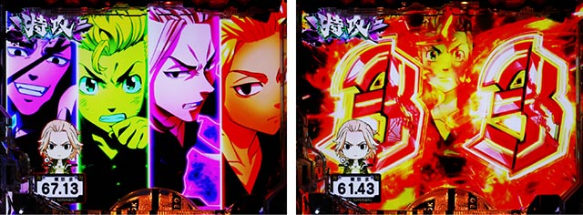東京卍會の隊旗が出現から開始する。テンパイを回避すると継続で、続くほどアツい(最大3回)。