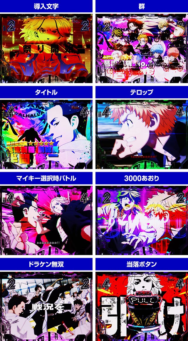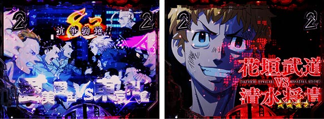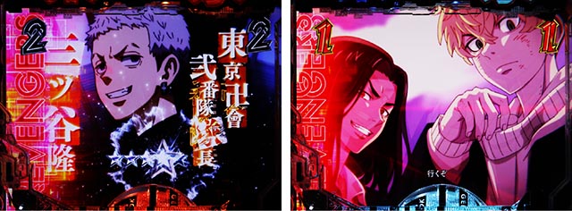 東京卍會の隊旗が画面いっぱいに出ると各種指令が下され、成功すれば連続予告的な役割を担うTOKYO卍NIGHT(図柄が特攻服に変化)となる。