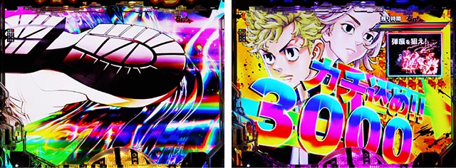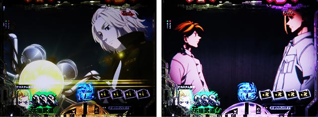 左・右打ち時ともに当カスタムを選ぶと、デジタル始動口に玉が入った際にデバイスに付いている東卍ランプが効果音と共に輝くアクションが発生する可能性あり。他機種で言うところの先バレ予告だ。