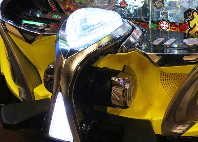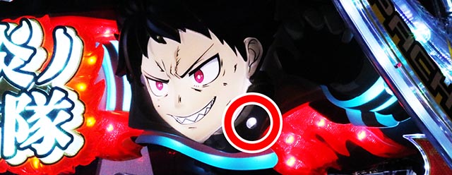 液晶上部にあるシンラギミックの、首元の一番右の穴が隠しランプ。ここが点灯すれば大当り濃厚だ。点灯タイミングは様々なので、設定時は注意深く見守ろう。
