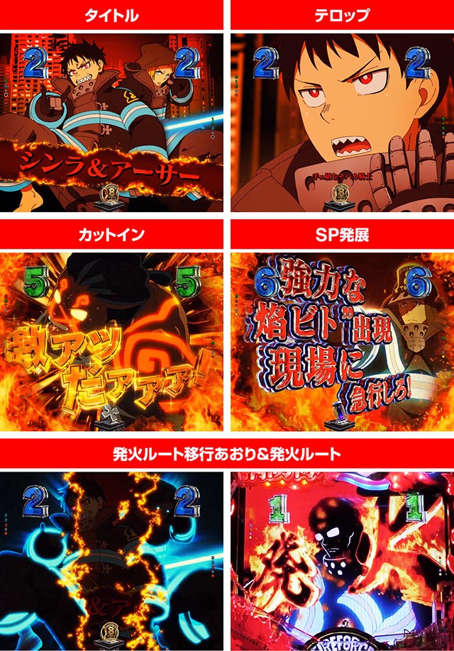 ここまで、『eフィーバー炎炎ノ消防隊2 紅丸ver.』の演出信頼度を徹底掲載してきたが、パチンコ第2弾ということで前作の演出を発展継承したものもあれば、新規演出も豊富で、非常に多彩な演出群となっている。