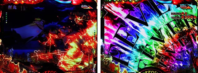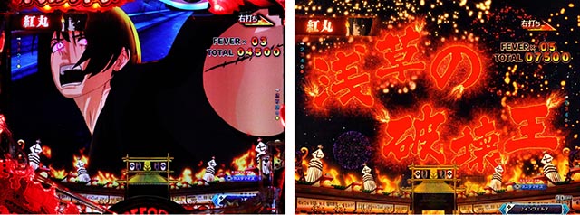 LT中の大当りは出玉約1500個の「炎上FEVER」と約4500個+αの「超炎上BURST」があり、超炎上BURSTによる上乗せで出玉をガンガン獲得していくスタイルだ。