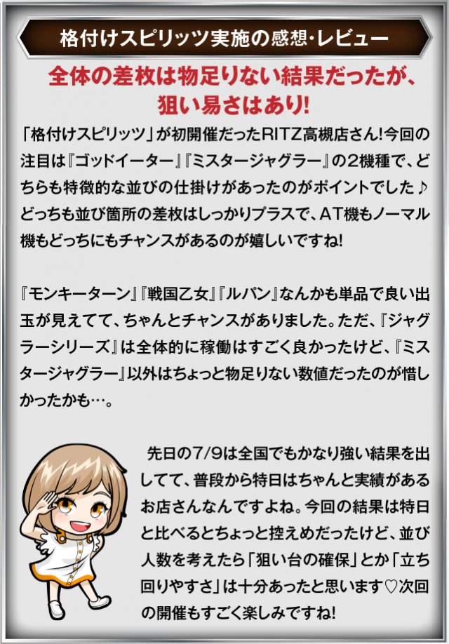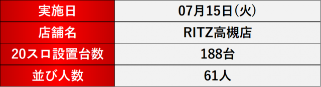 7月15日(火) RITZ高槻店にて、DMMぱちタウンの「格付けスピリッツ」を実施。