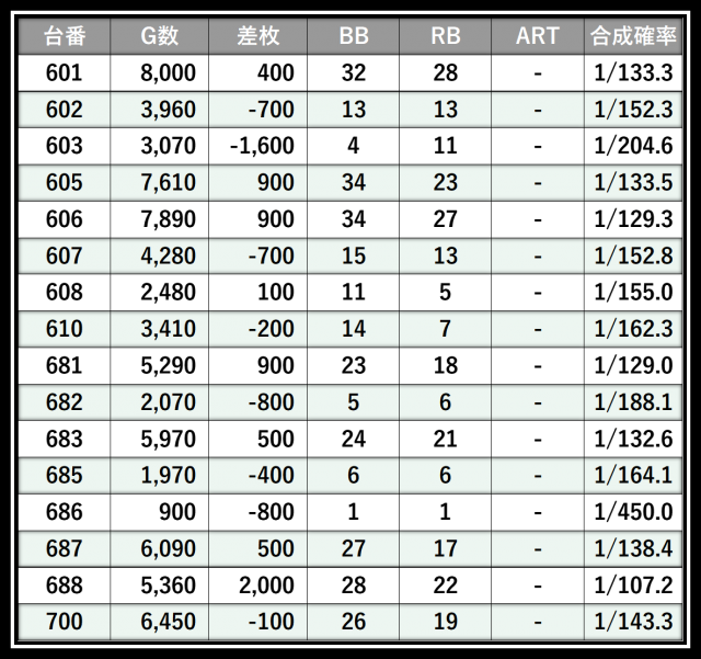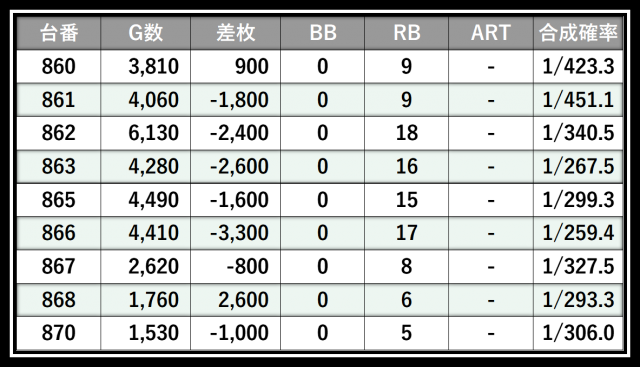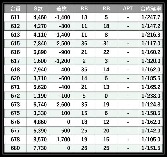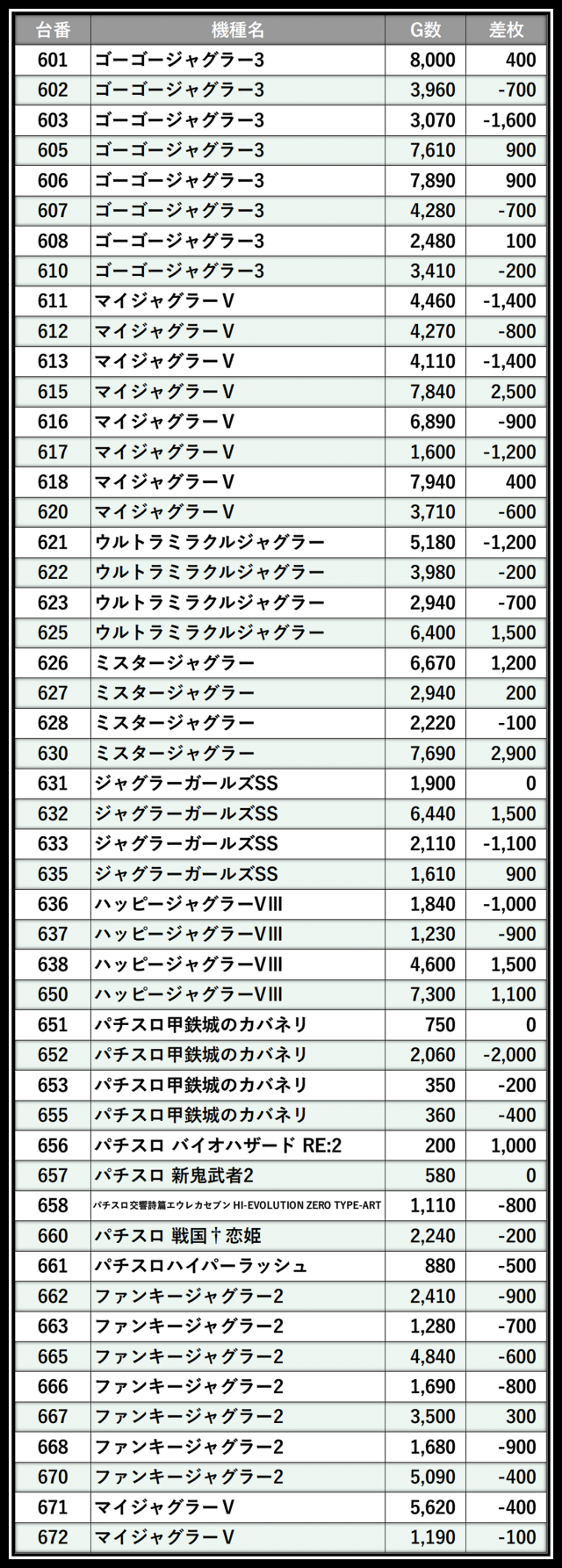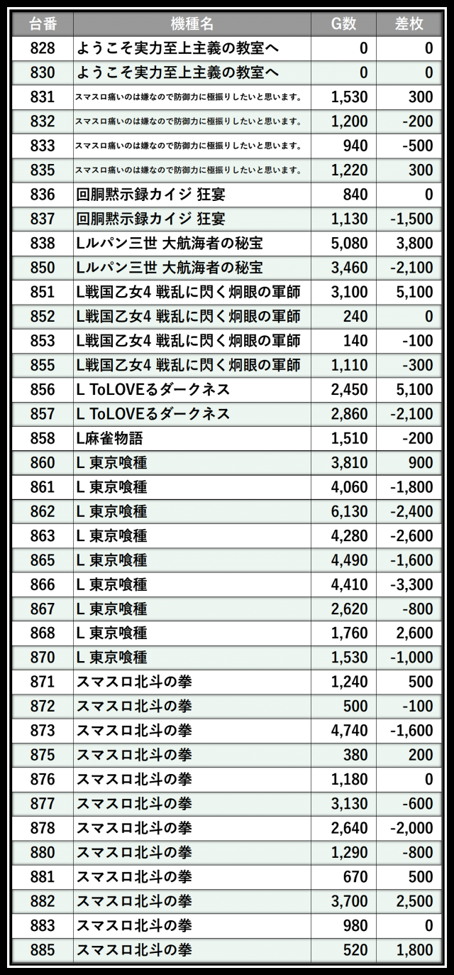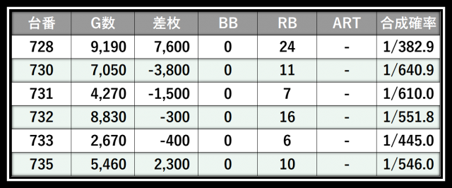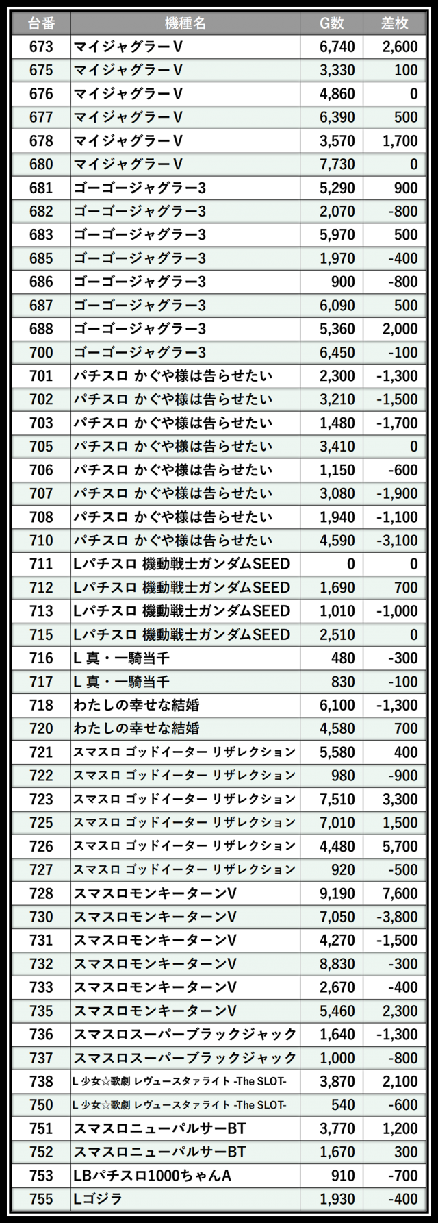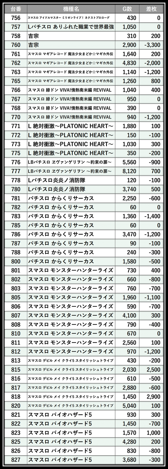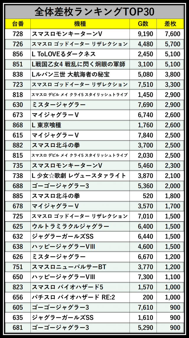 ※差枚数順に掲載しています