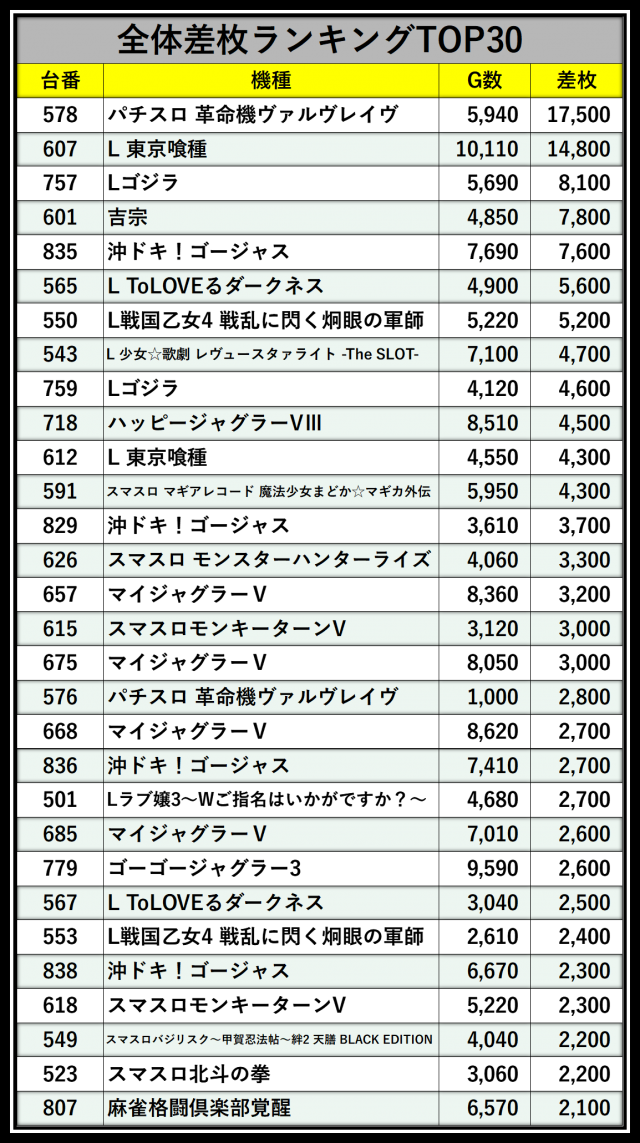 その結果の中から、ぱちタウンが注目すべきポイントを厳選してユーザーにお届け!プレイヤーが楽しんだ一日を下記データにて振り返ってみて欲しい。