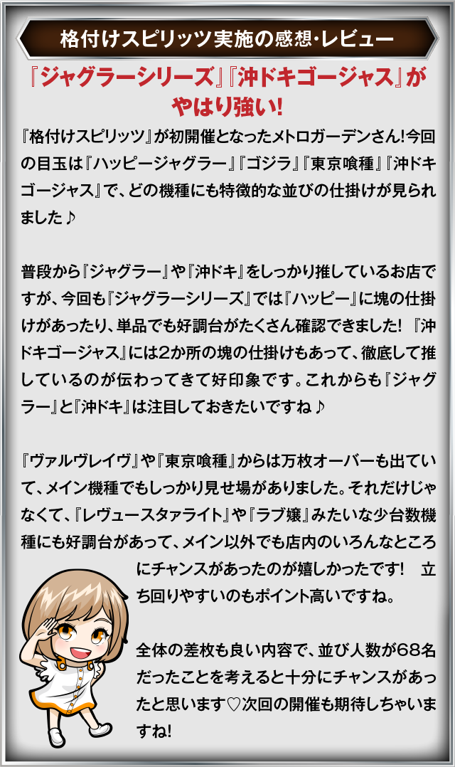 7月20日(日) メトロガーデンにて、DMMぱちタウンの「格付けスピリッツ」を実施。