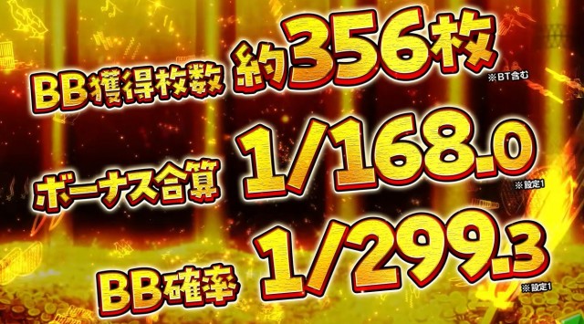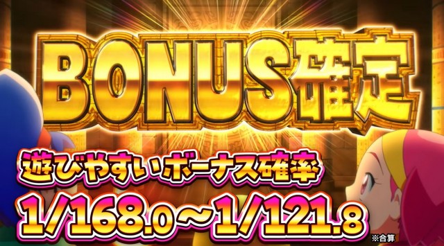 ボーナス確率も遊びやすい1/168.0~1/121.8となっているところも嬉しいポイントだ。