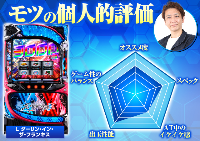 そんなモツにとって朗報が。今夏、特定のボーナスで50%を勝ち獲り続ければ3000枚を獲得できる新台がデビューする…との情報をゲットしました。その名も『L ダーリン・イン・ザ・フランキス』。いったいどんなゲーム性で夢を見させてくれるのか。各注目ポイントを一緒にチェックしていきましょう!