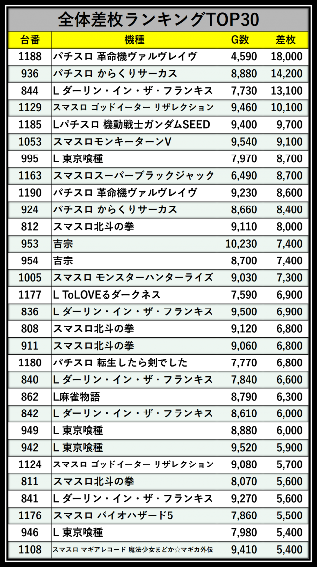 その結果の中から、ぱちタウンが注目すべきポイントを厳選してユーザーにお届け!プレイヤーが楽しんだ一日を下記データにて振り返ってみて欲しい。