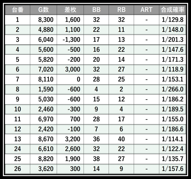 その結果の中から、ぱちタウンが注目すべきポイントを厳選してユーザーにお届け!プレイヤーが楽しんだ一日を下記データにて振り返ってみて欲しい。