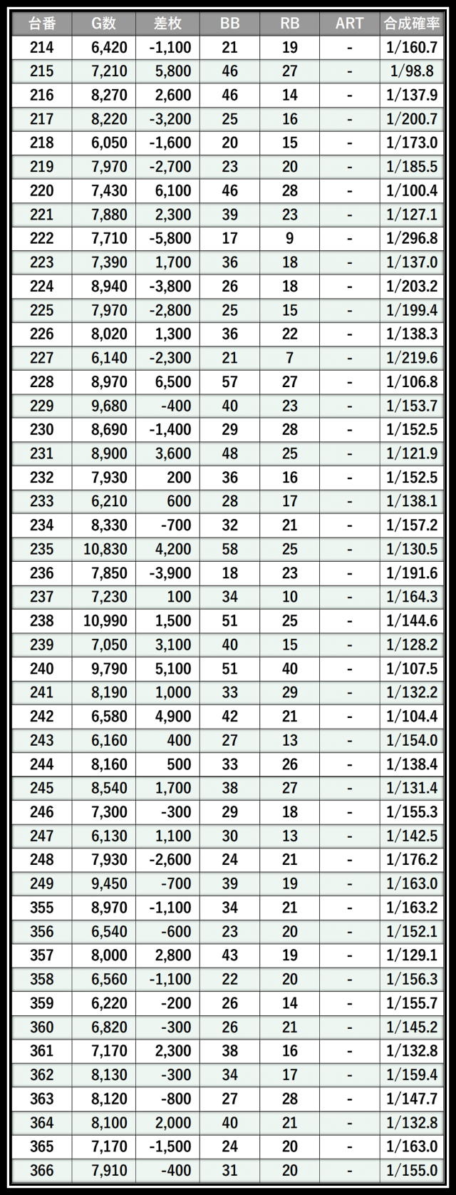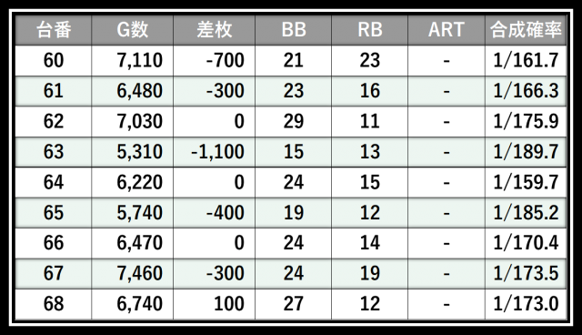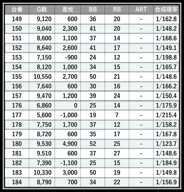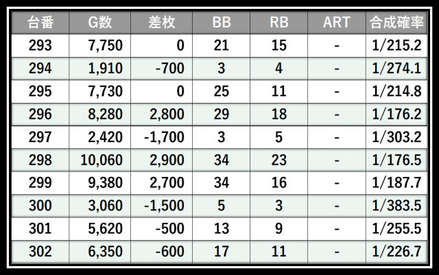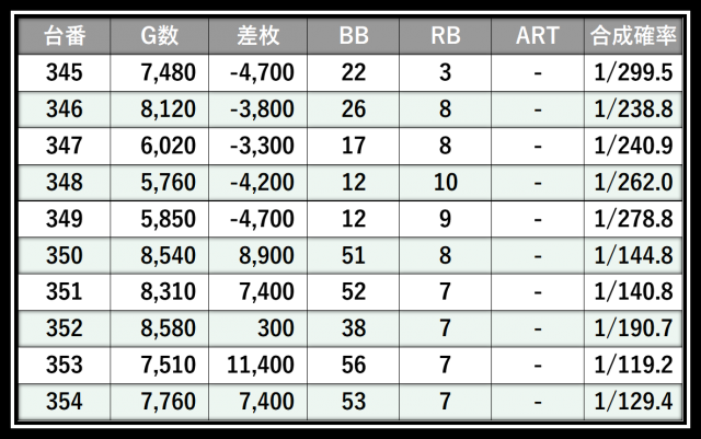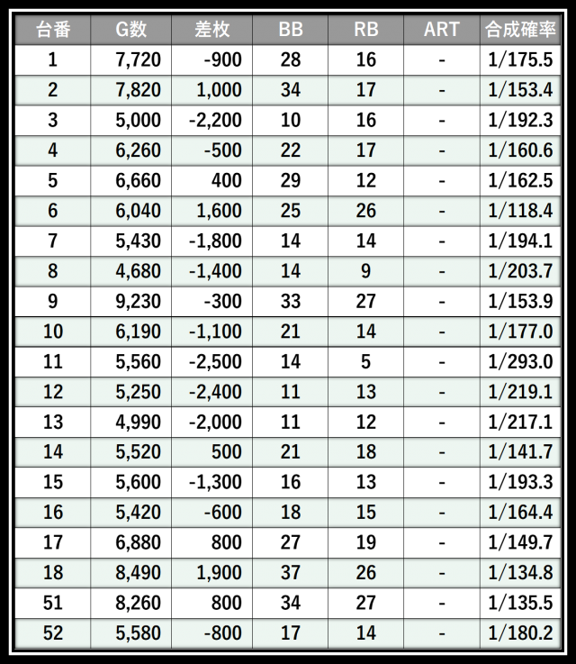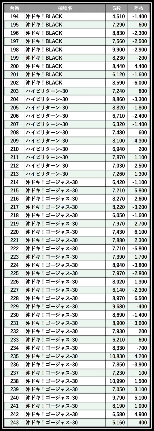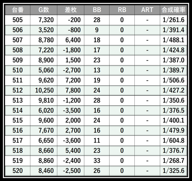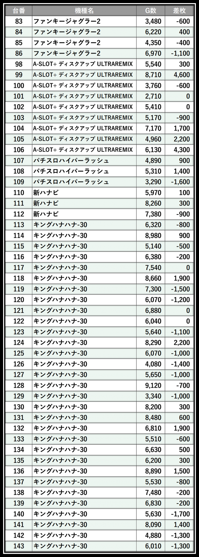 ※差枚数順に掲載しています