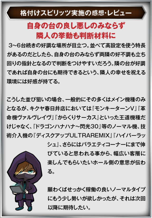 8月11日(月) キクヤ春日井店にて、DMMぱちタウンの「格付けスピリッツ」を実施。