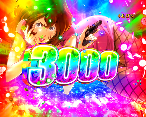 LT中の大当りはブチヌキBONUS(出玉の上乗せ)に期待。ルパンRUSHか不二子RUSHか選択したRUSHによって専用演出が楽しめる。