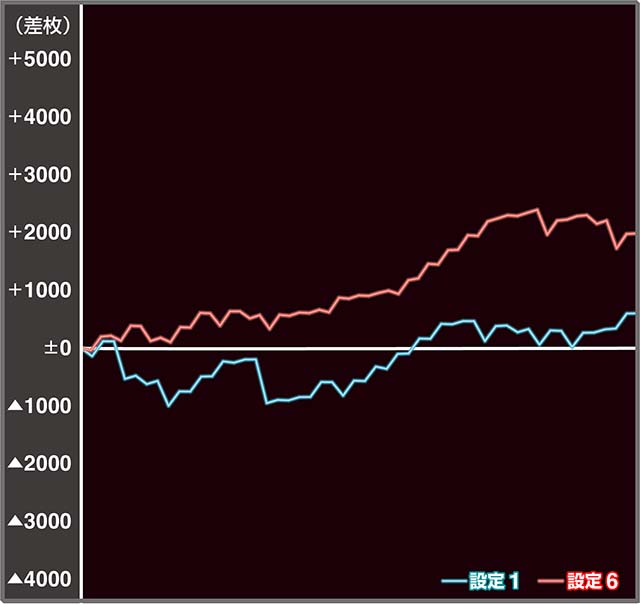 あとはこういう右肩上がりのグラフを築いていれば高設定の可能性が上がるかも…!?