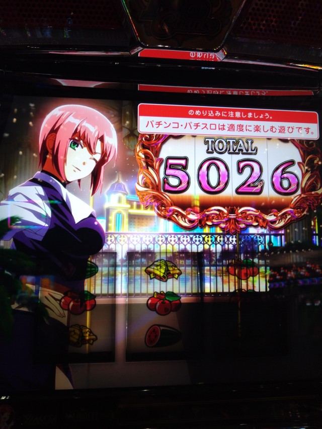 200枚ほど使ったところで当たり、そこからなかなか終わらない。18時位から打ち始め21時でまさかの5000枚。閉店までは無いだろうと思いながらもとにかく回しました。結果67連で終わらずに7500枚で閉店を迎えてしまいました。