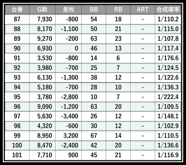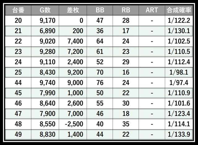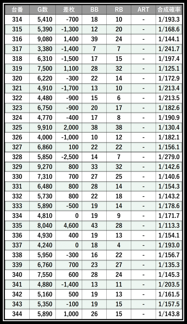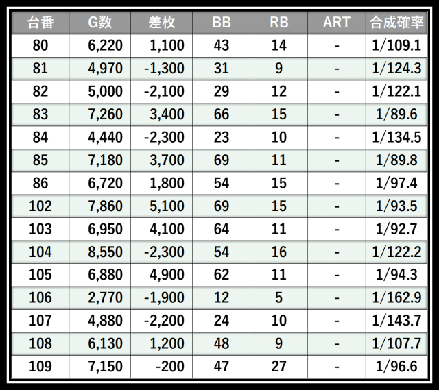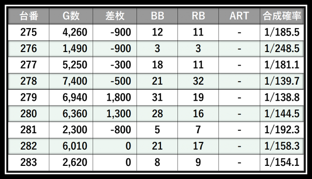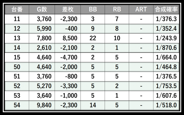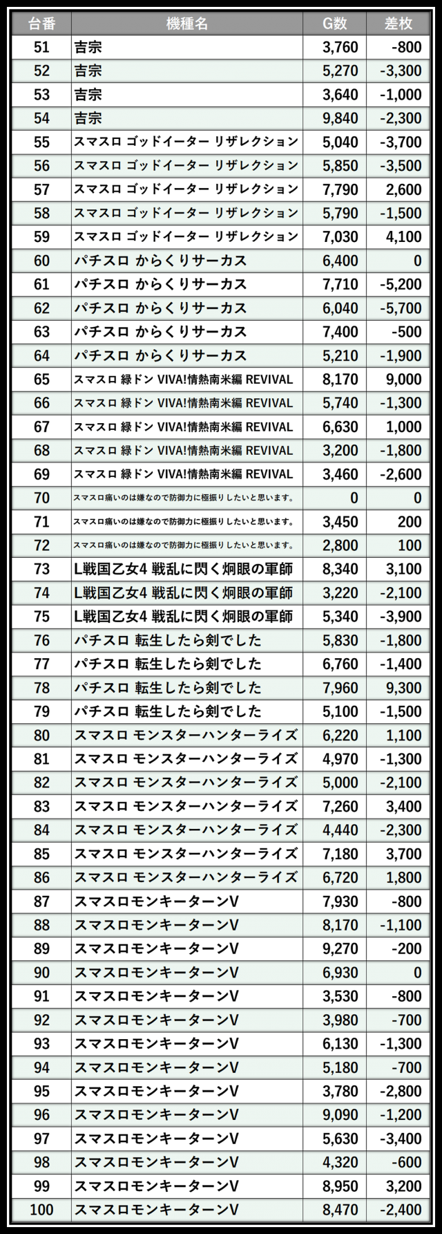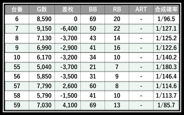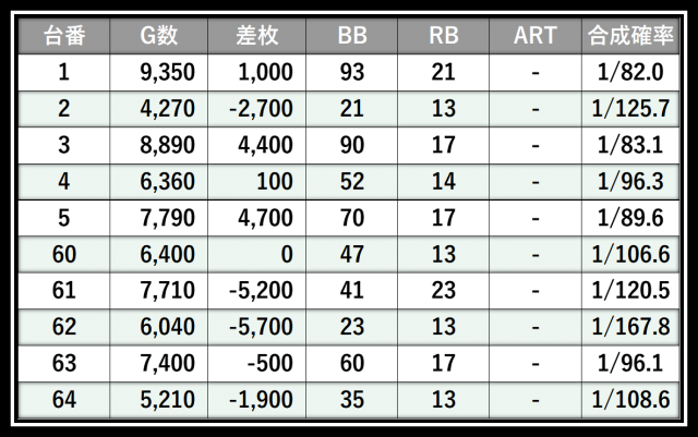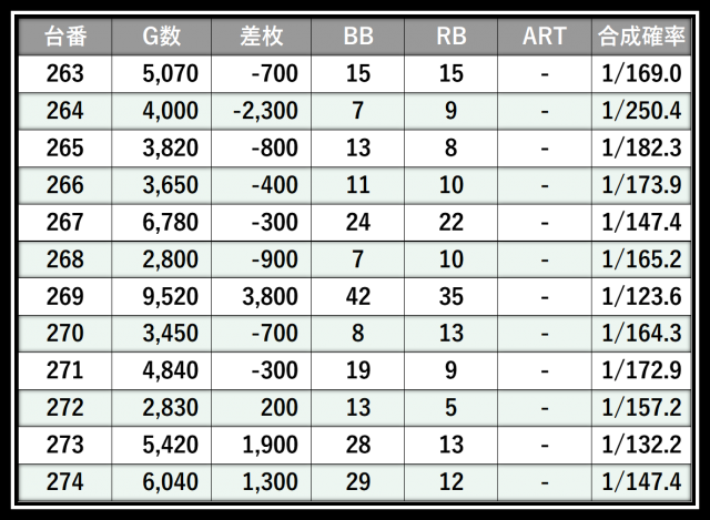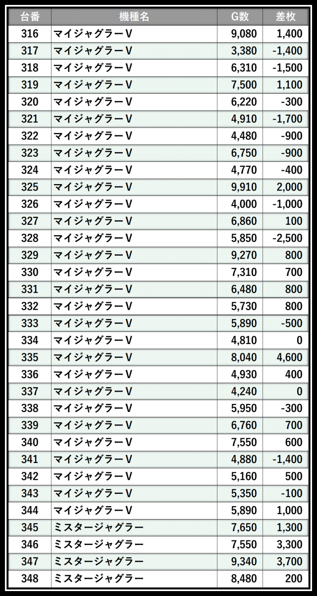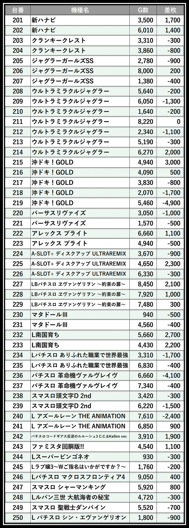 ※差枚数順に掲載しています