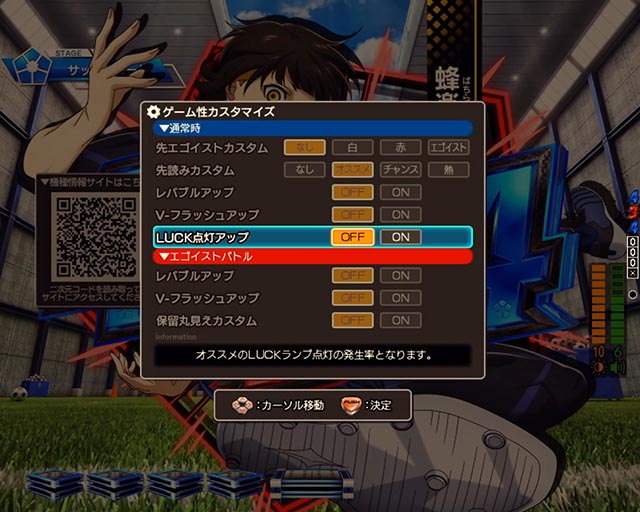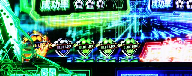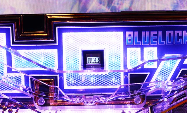 液晶下部の「ブルーロック」ロゴの「ロ」の中に注目しましょう。小さく「LUCK」と書かれたランプがあり、点灯すれば大当り濃厚となります。当カスタマイズをONにすれば、その大当り占有率が飛躍的にアップ!