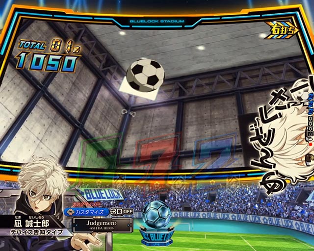 また登場キャラ(全8種類)によって、演出成功率と出玉期待値が変化するのも見どころです。「御影 玲王」はバランス重視型で、「凪 誠士郎」は発展した時点でゴールが約束されます。「潔 世一」は鬼アツなのにくわえて、ゴールすれば出玉3000個以上が濃厚です♪