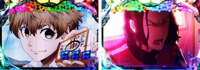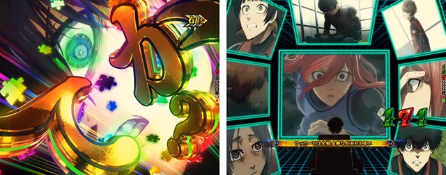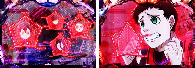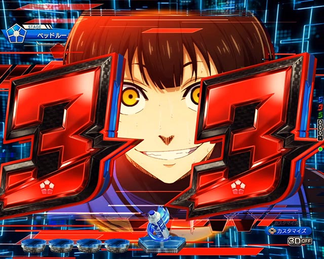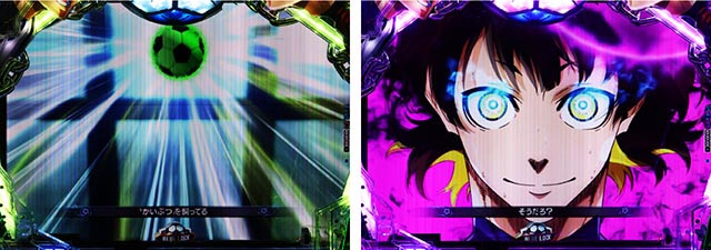 ボールが画面を破壊すればその合図となり、キャラアイコンが停止、リンクするアクションに繋がる。アイコンは10種類で、確定したときにノイズが走れば科学反応となり、プラスアルファで再度1つ獲得=チャンス演出が2つ発生する。