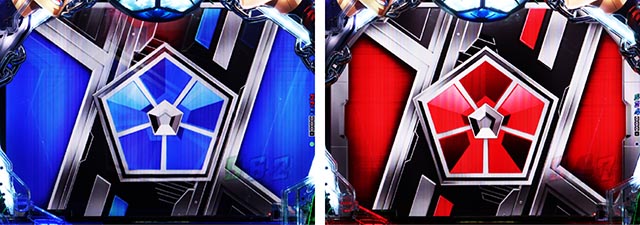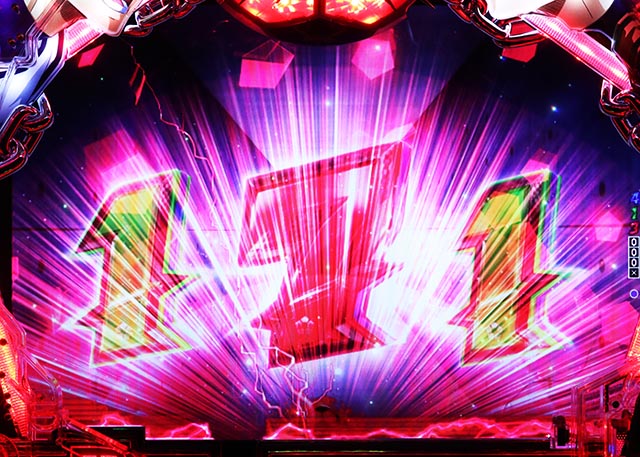 アクション自体は、ヘソチャッカーに玉が入賞したときに効果音をともなっての盤面各所のランプ発光。カスタム3項目で色と信頼度数値が変わり、エゴイスト(金)のときにアクションが発生すれば大当り濃厚だ。