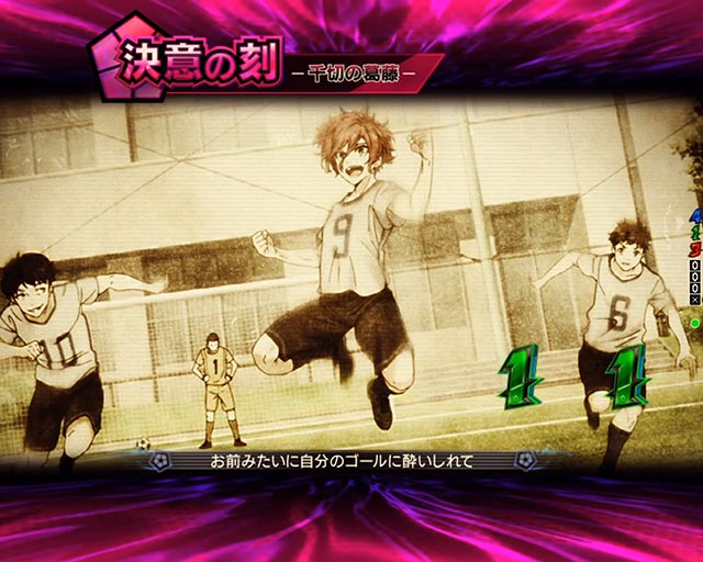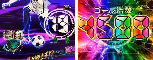 エゴイストアタックは発生=電チュー開放で保留を貯める場面となり、その際にチョイスされた選手がゴールを決めれば大当り。ミスしてもRUSHは継続される。そのトータル成功率は約88%だ。