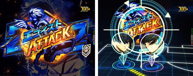 そのLT「エゴイストBATTLE」は転落抽選を採用。転落よりも先に大当りを射止めれば連チャンとなるが、その前にもエゴイストアタックなる関門が控えている。