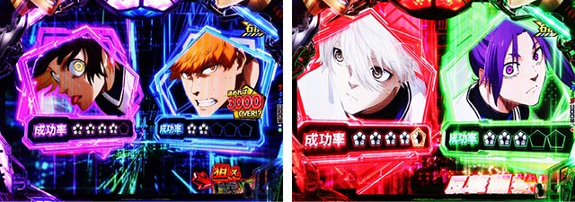 アクションでの色変化は金が鬼アツ。また本機の特色といえるエゴ青は金と同格の高信頼度となる。