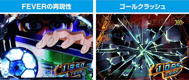 ゴールクラッシュは各ラウンドの開始時に発生する。FEVERの再現性は出玉1500個告知時の最終ラウンド開始時にのみ発生して、3000個上乗せが濃厚となる。