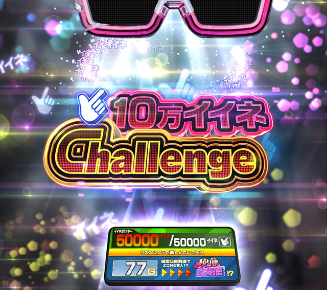 CZである10万イイネChallengeは1回転のCタイムで、成功によりパリピCHANCEとなる。