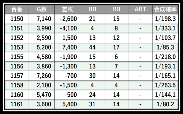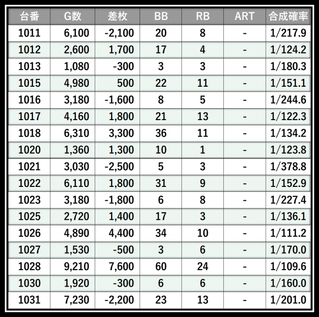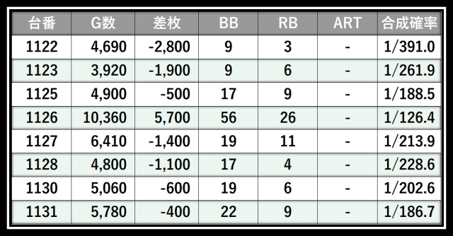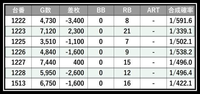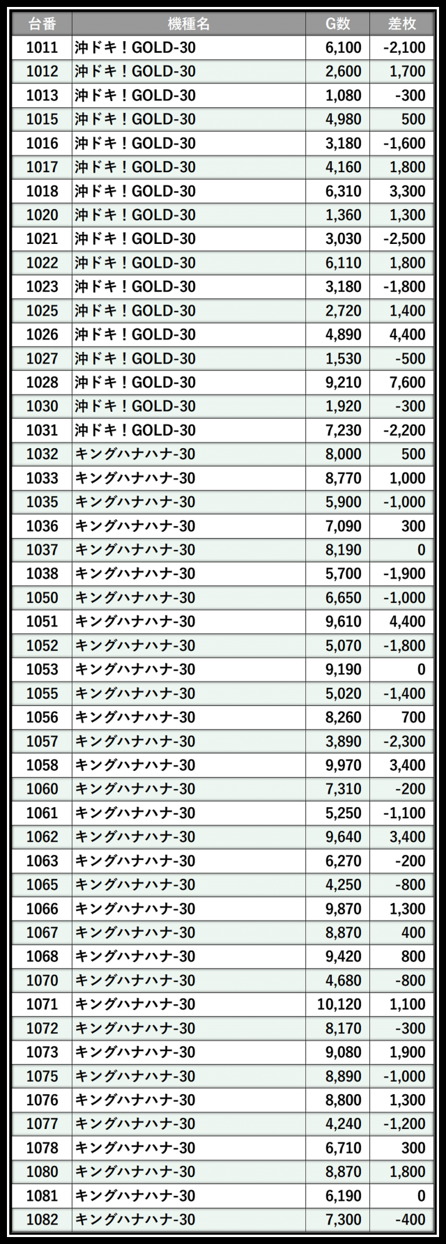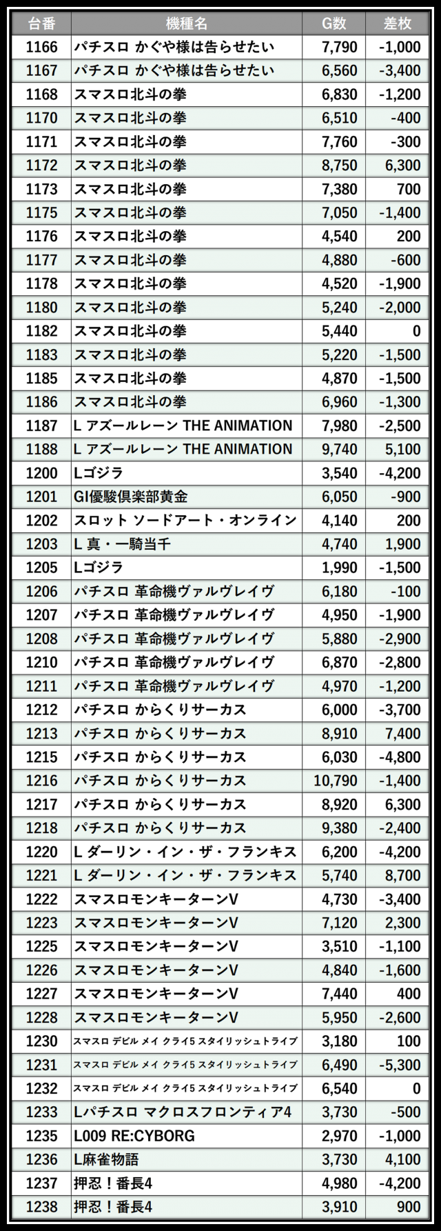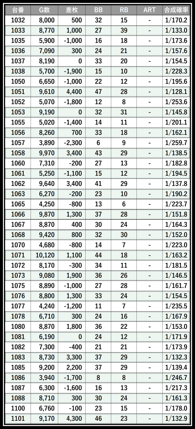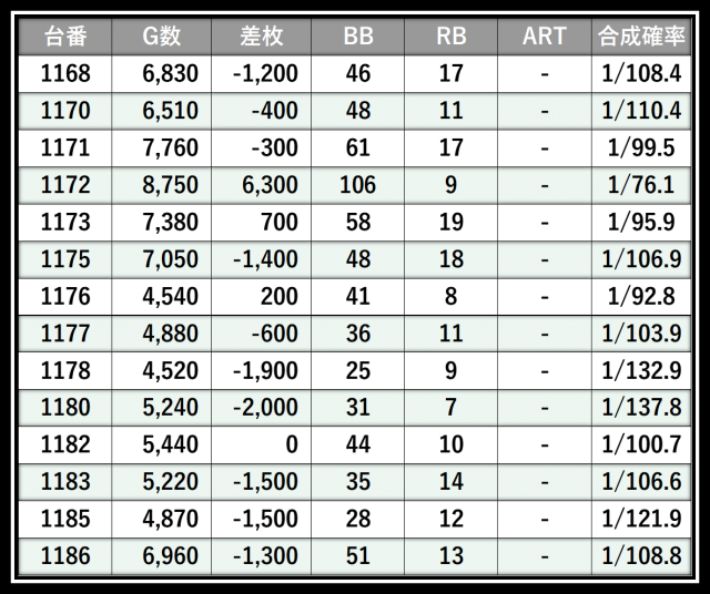 ※差枚数順に掲載しています