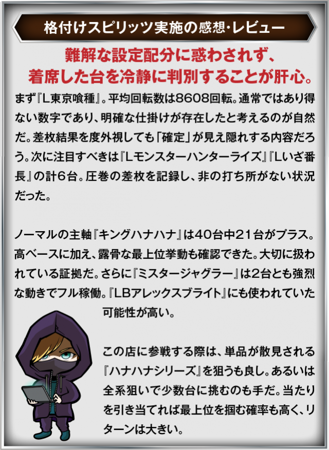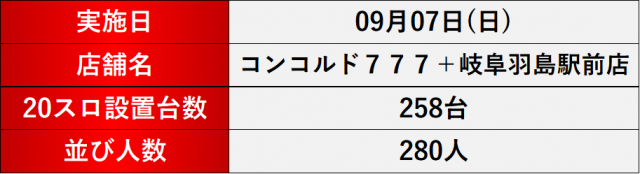 9月7日(日) コンコルド777+岐阜羽島駅前店にて、DMMぱちタウンの「格付けスピリッツ」を実施。