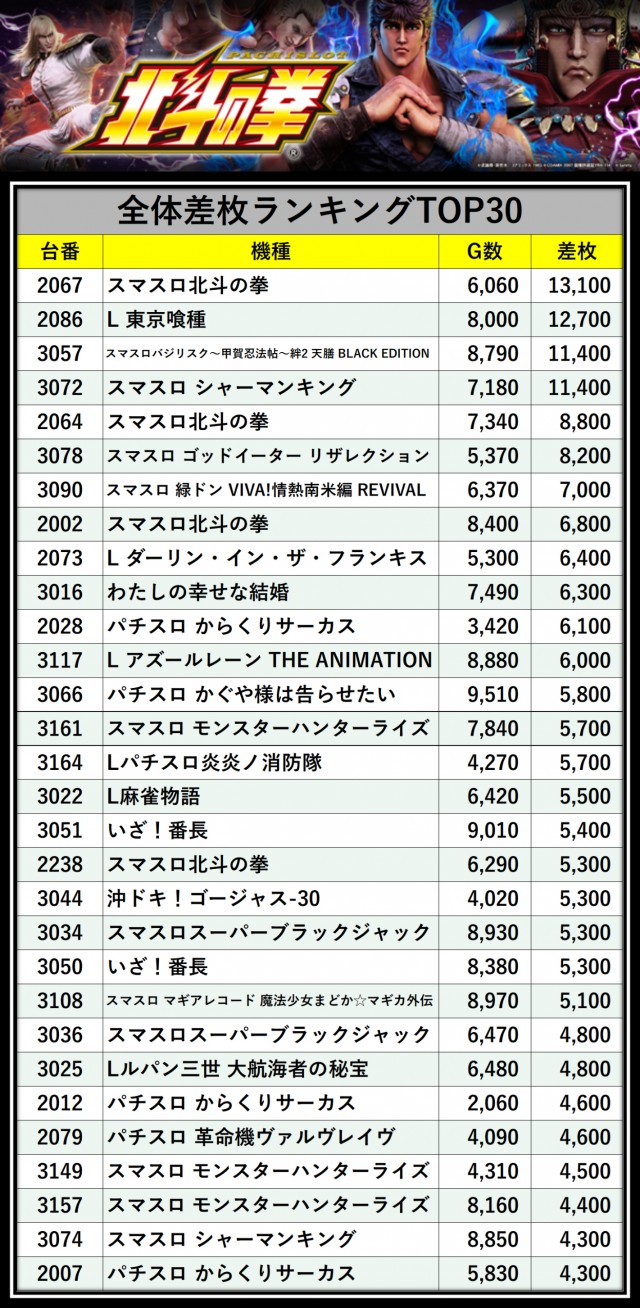 その結果の中から、ぱちタウンが注目すべきポイントを厳選してユーザーにお届け!プレイヤーが楽しんだ一日を下記データにて振り返ってみて欲しい。