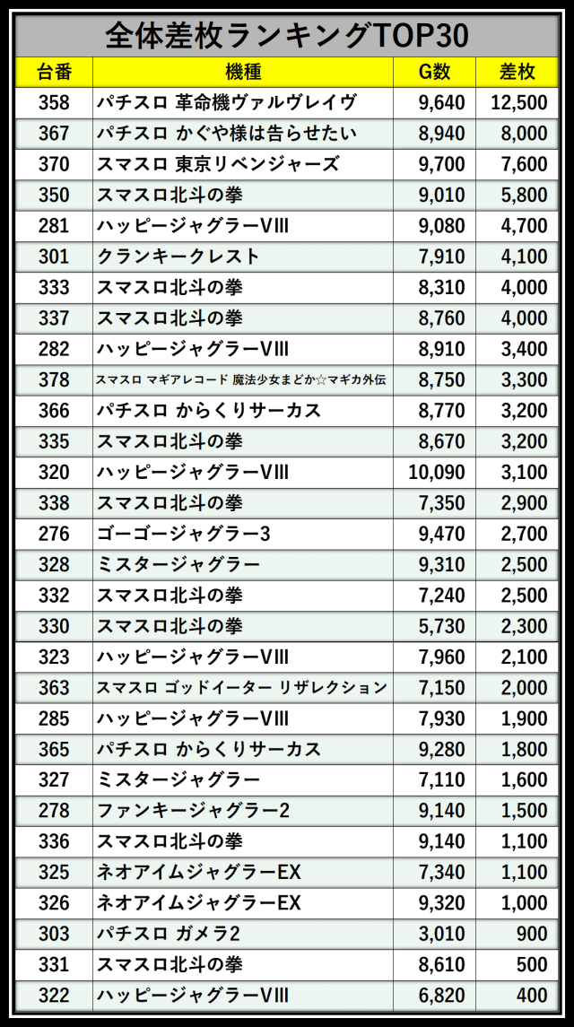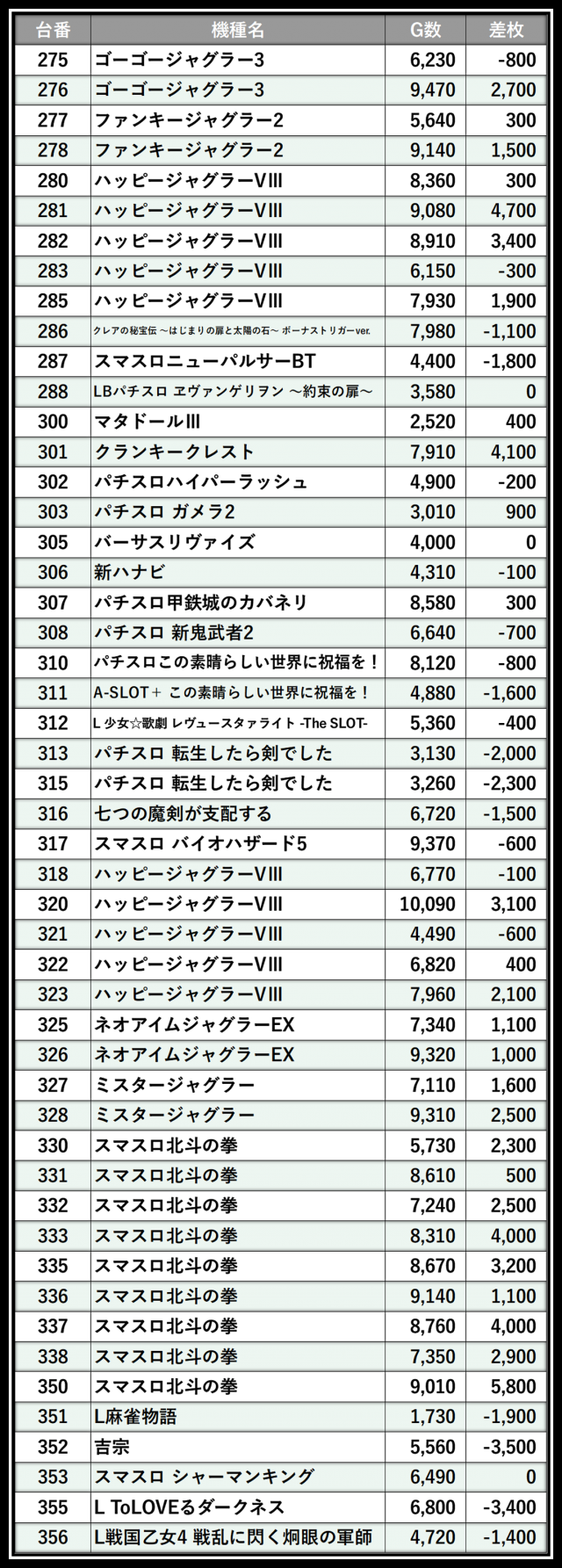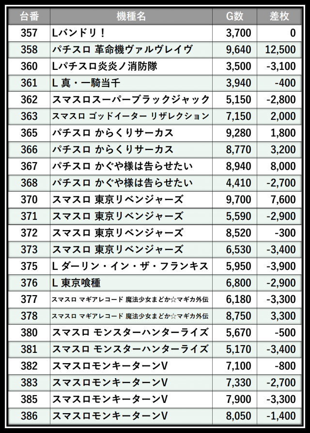 その結果の中から、ぱちタウンが注目すべきポイントを厳選してユーザーにお届け!プレイヤーが楽しんだ一日を下記データにて振り返ってみて欲しい。