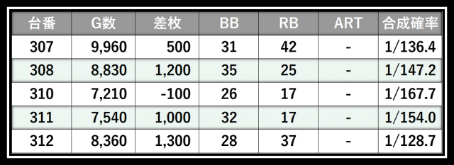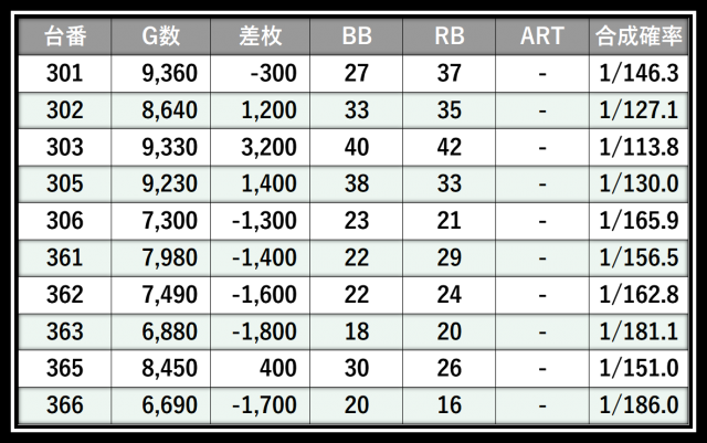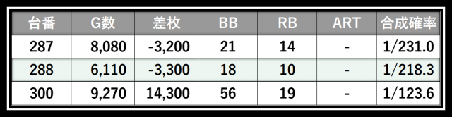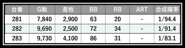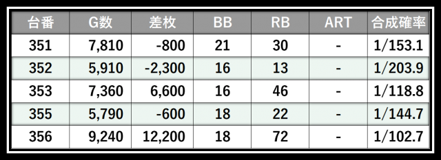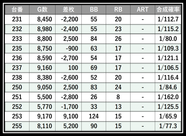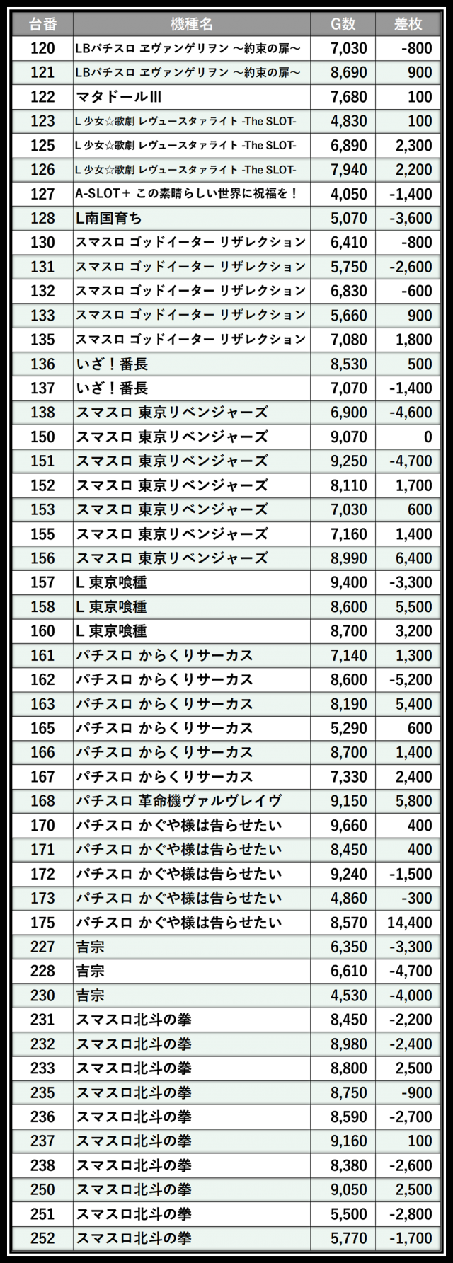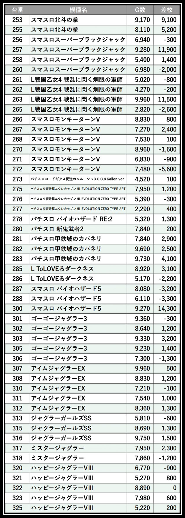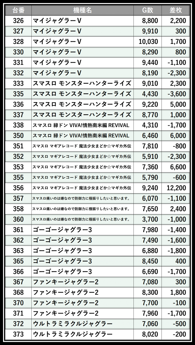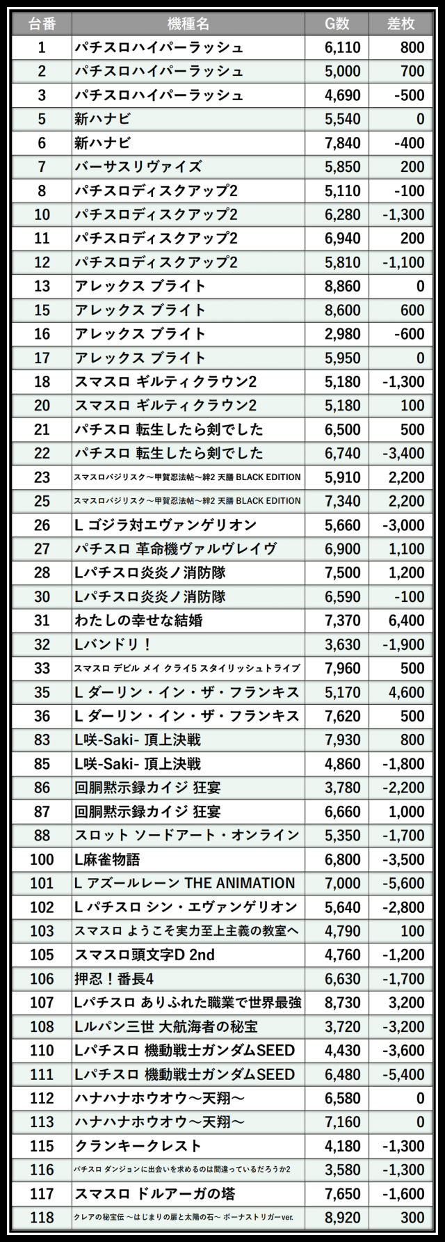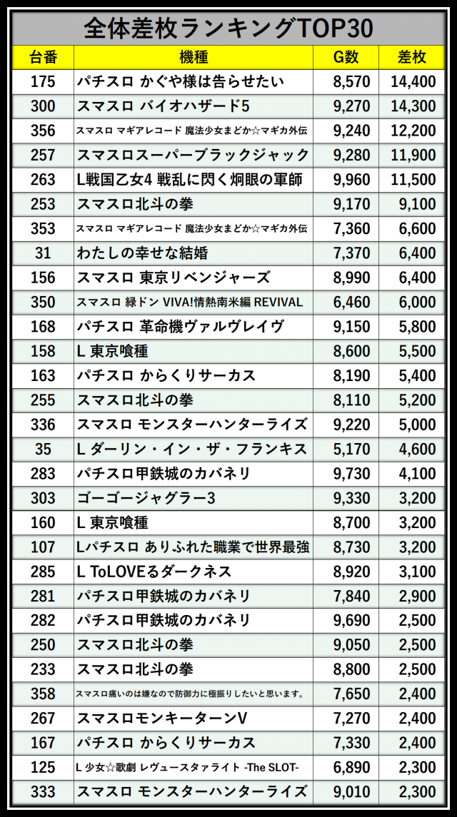 ※差枚数順に掲載しています