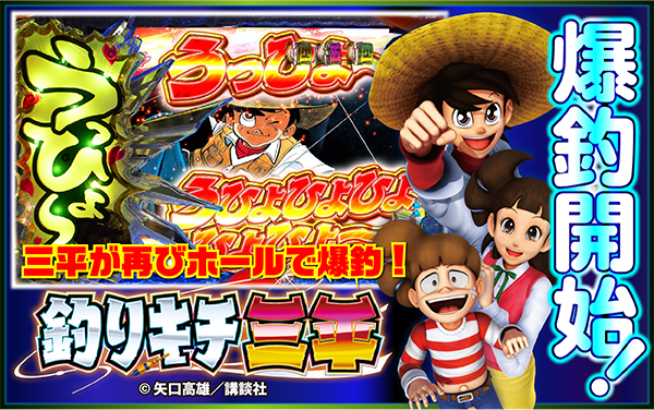 釣り漫画の金字塔「釣りキチ三平」とのタイアップマシンが再びホールで爆釣宣言!