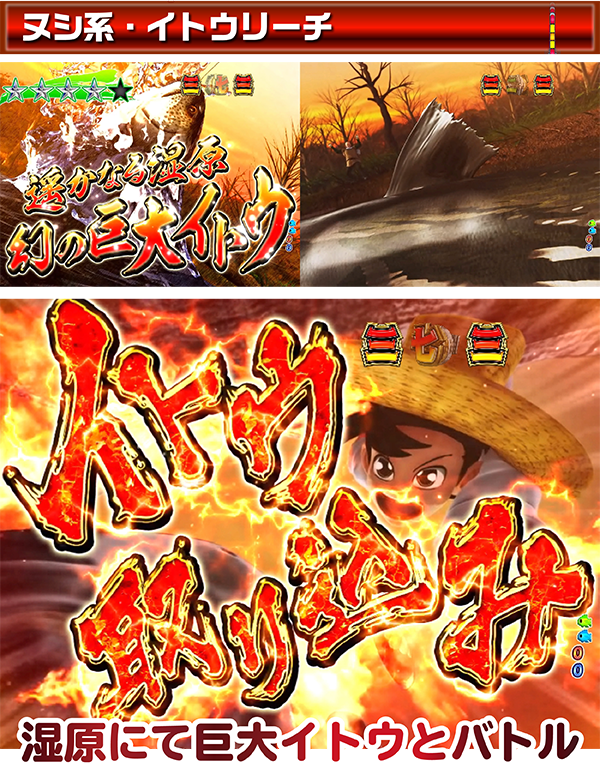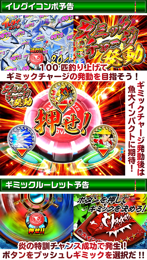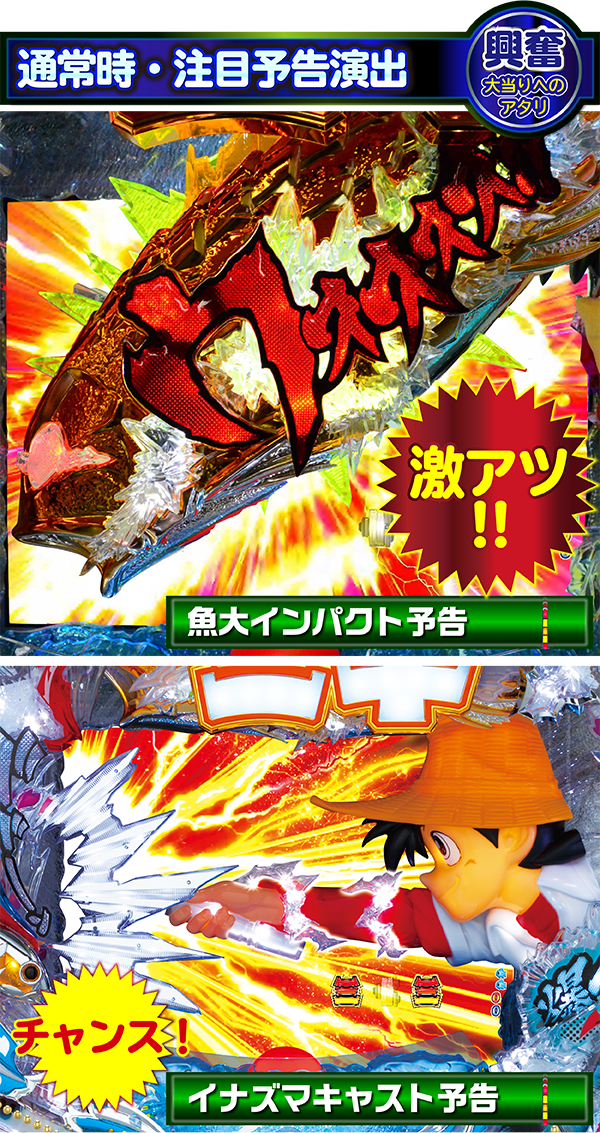 魚大インパクトは発生すれば興奮の瞬間が訪れる最重要ギミックで、イナズマキャストはチャンスを告げるギミックとなっている。