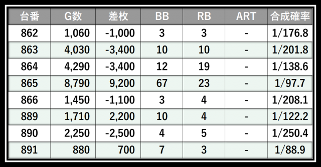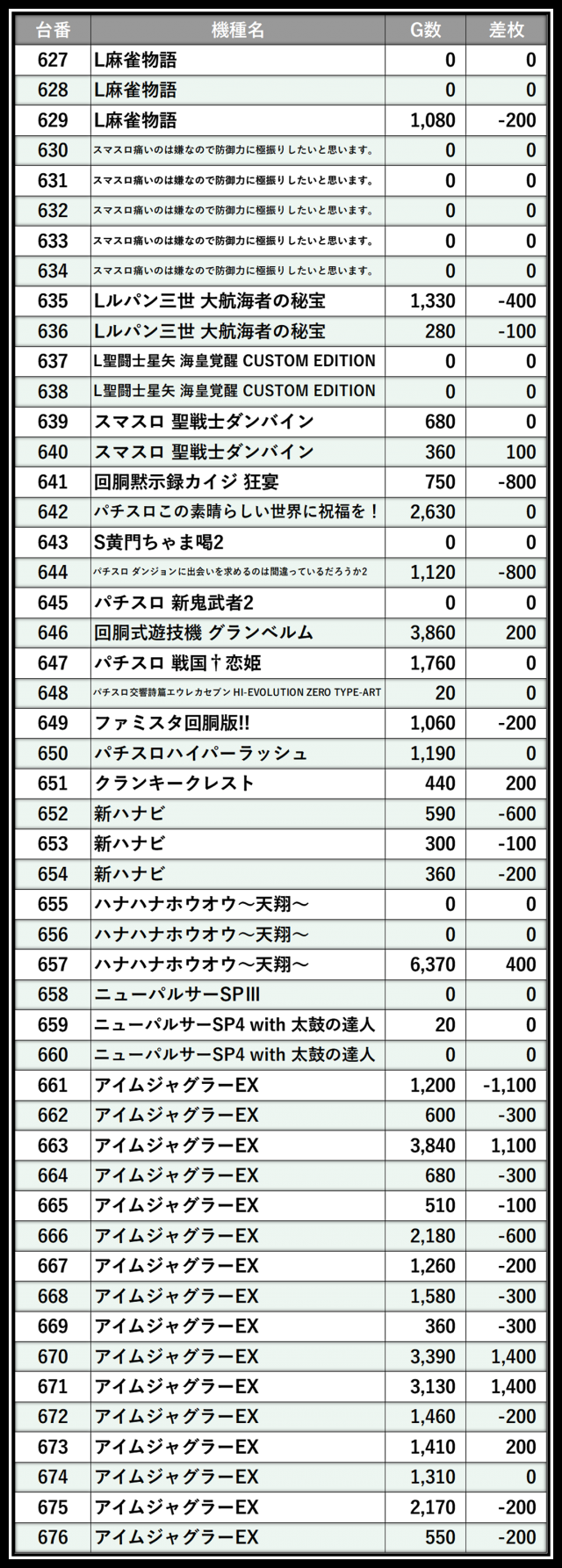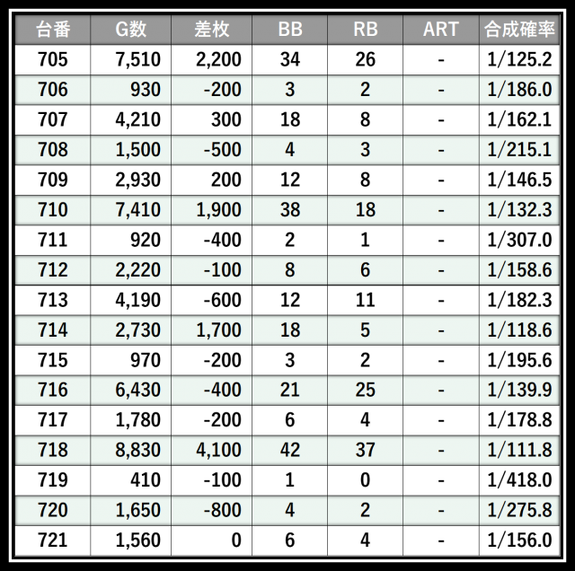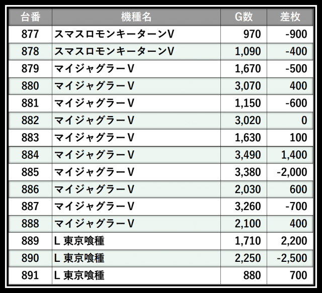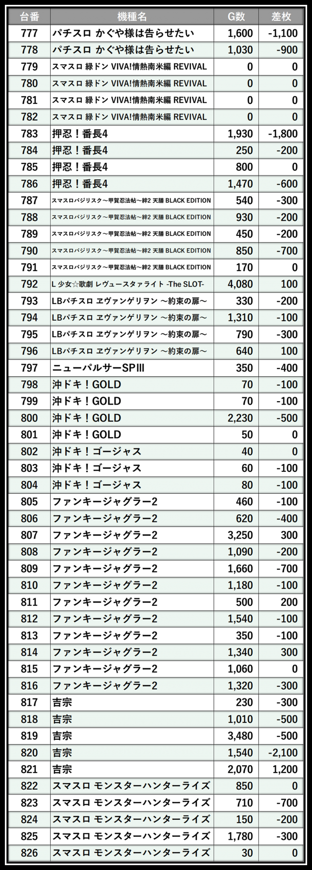 ※差枚数順に掲載しています