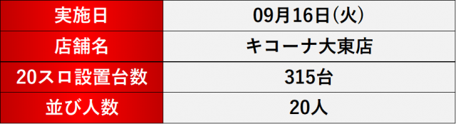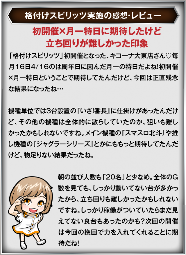 9月16日(火) キコーナ大東店にて、DMMぱちタウンの「格付けスピリッツ」を実施。