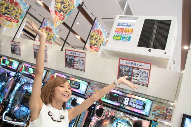 「ジャグラーなんて、てんこ盛りですよぉ~。地域最多の導入数らしいですね。それじゃあ、早速打って良いですか?」