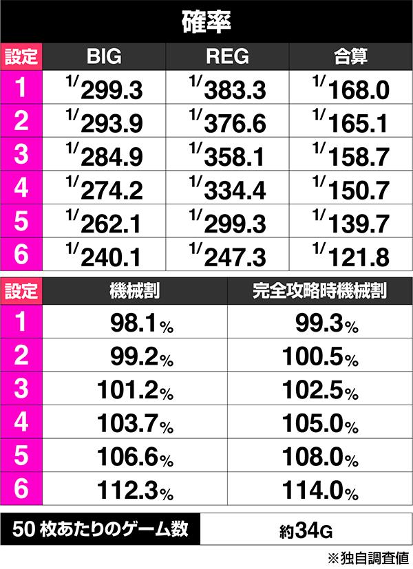 基本スペックはご覧の通り。完全攻略時の機械割が最高設定で114.0%にものぼることから、BT機デビュー元年にして最強スペックの呼び声が高い。
