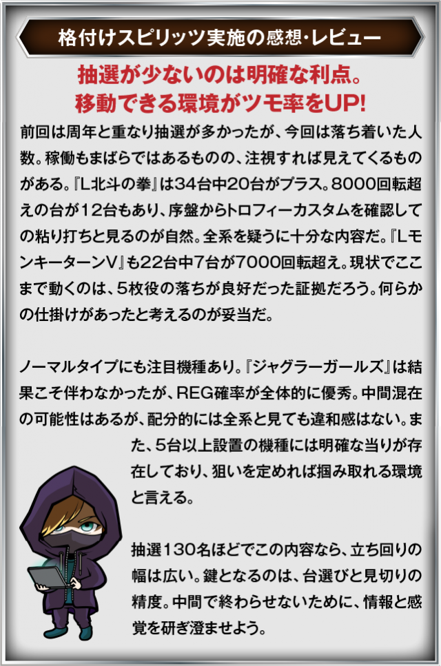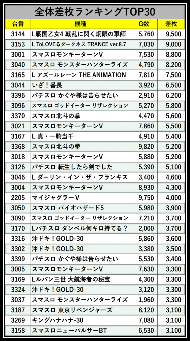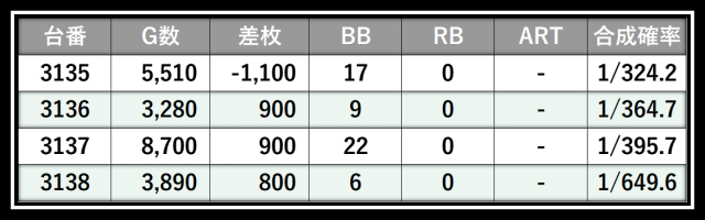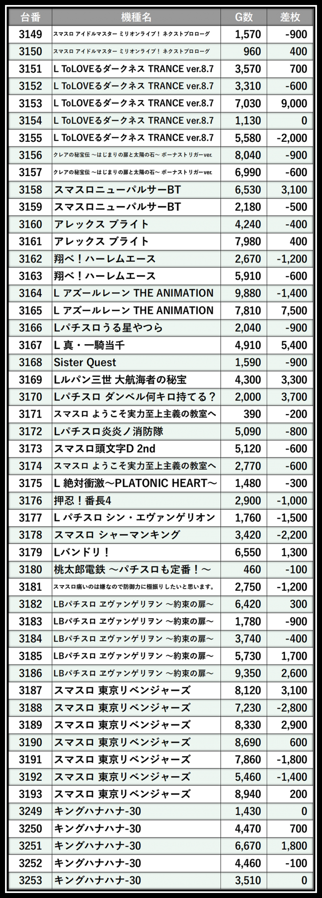 その結果の中から、ぱちタウンが注目すべきポイントを厳選してユーザーにお届け!プレイヤーが楽しんだ一日を下記データにて振り返ってみて欲しい。