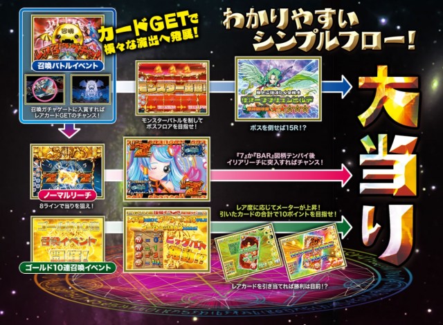 スペックは、大当たり確率1/99.902、ST突入率は33%、ST32回で、ST中大当たりの50%が15R、約1350個となり初当たりの軽さと合わせ初心者にも手軽に遊べるスペックとなる。