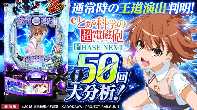 藤商事の新機種『eとある科学の超電磁砲 PHASE NEXT』が、ホールに登場した。スペックは大当り確率1/169.7(※1)で、LT突入率約25%・継続率約77%というLT特化型のマシン。LT中は大当りの約53%が3000個(※2)以上と、ライトミドルとは思えない出玉力が特徴だ。