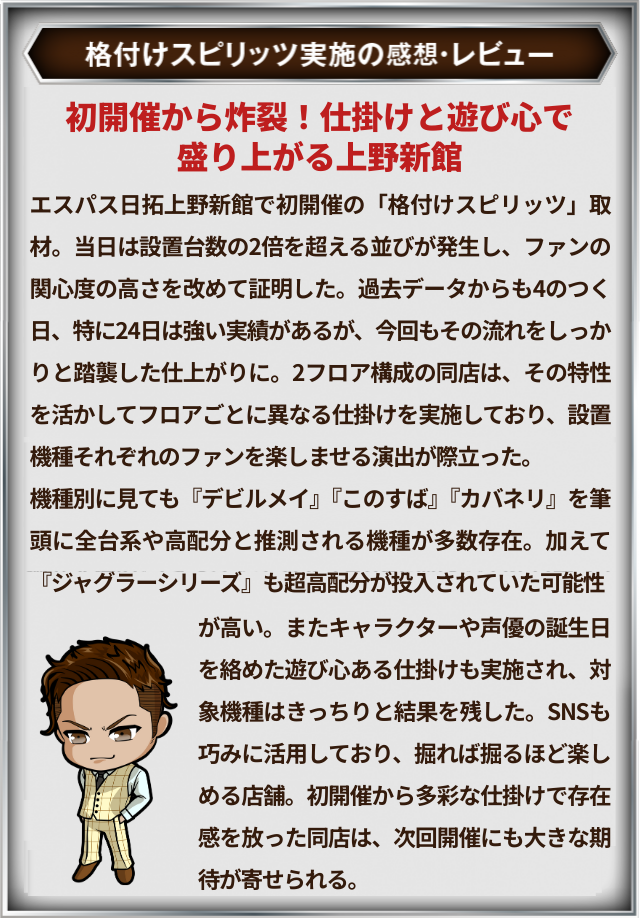 9月24日(水)エスパス日拓上野新館にて、DMMぱちタウンの「格付けスピリッツ」を実施。