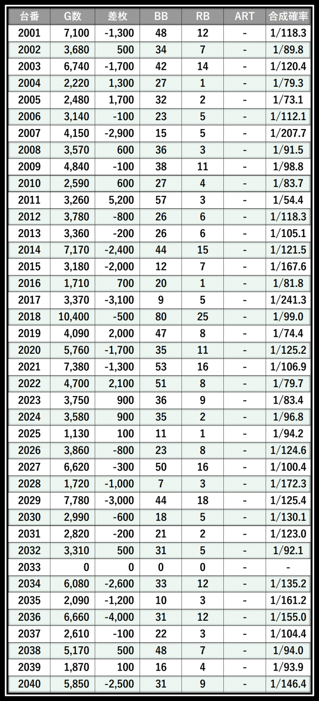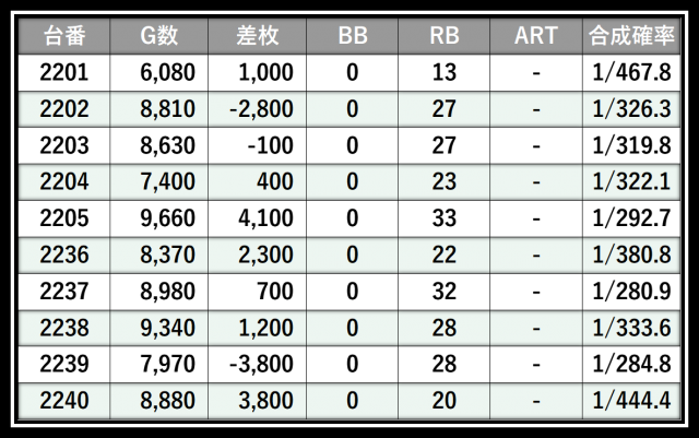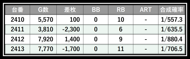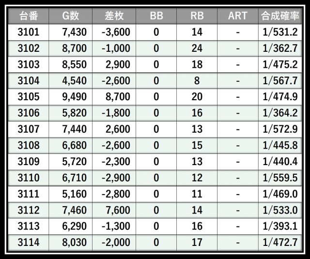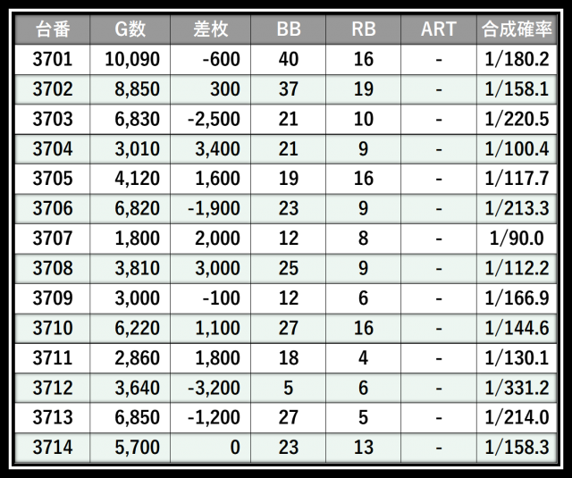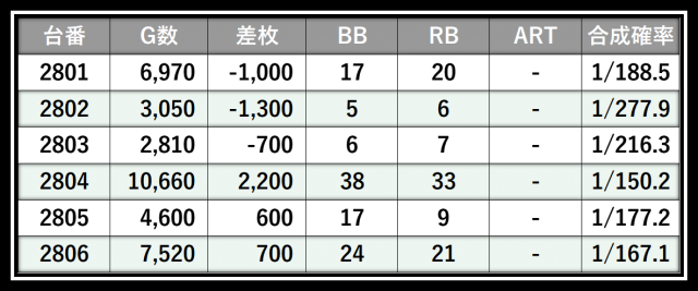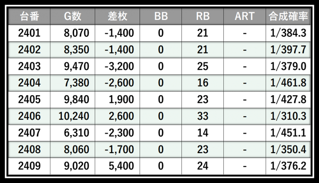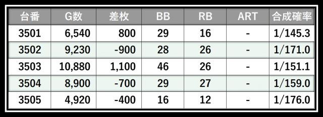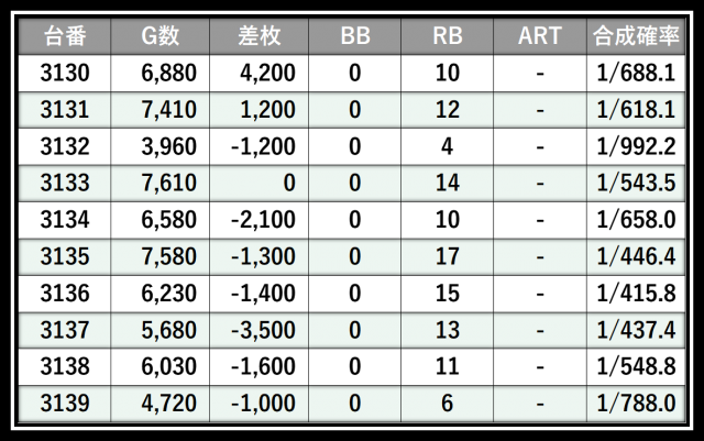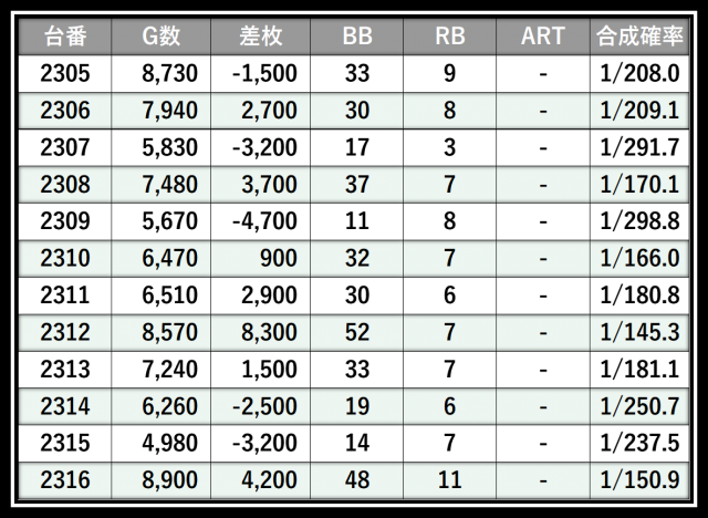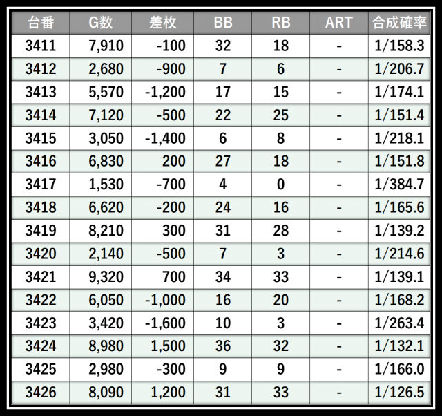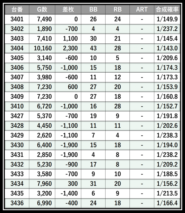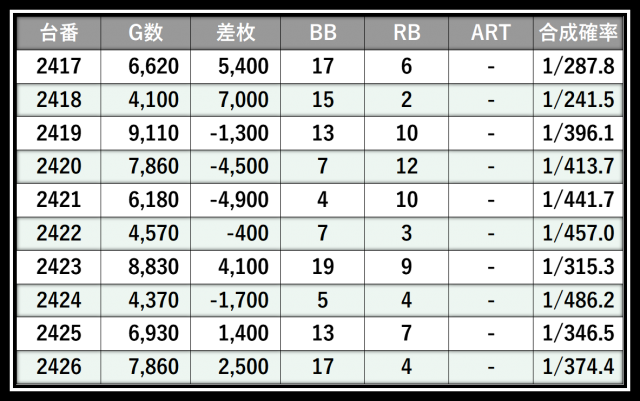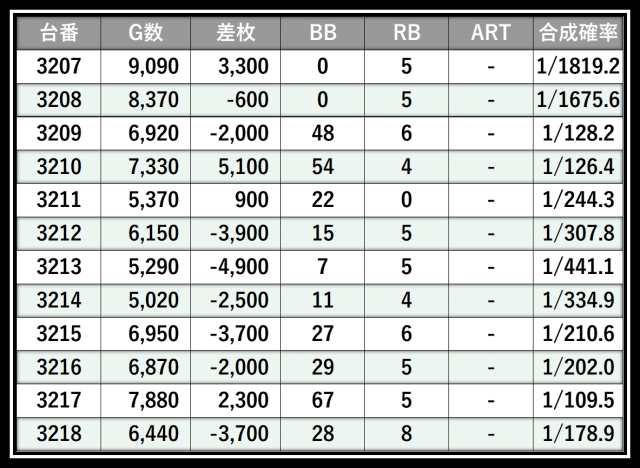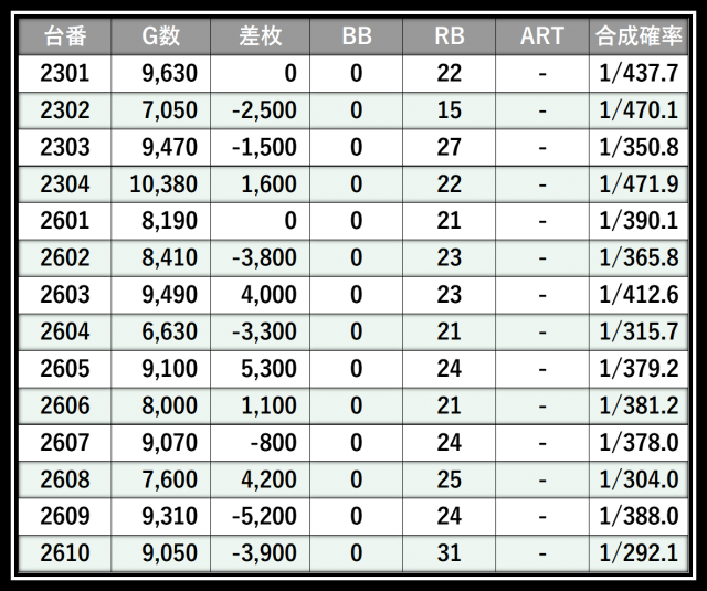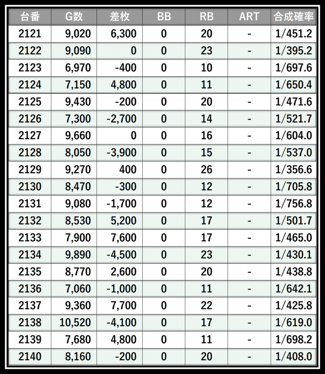 ※差枚数順に掲載しています