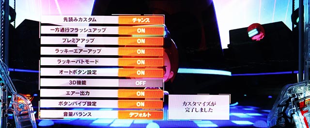 通常時は以下2つのカスタムを設定でき、その後は画面下に選択したものが表示される。互いの組み合わせで全45種類のゲーム性をチョイスでき、奥深さは他機種を圧倒している。