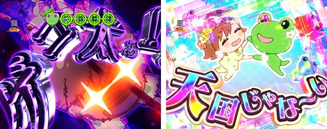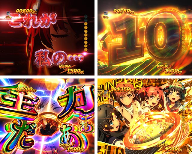 P機では高確率で大当りをもたらしていた4つのアクションが、本機ではすべて超激アツに昇華しているのが大きな特色。出現ポイントが異なるため、変動の序盤から終盤まで期待感が持続するのが喜ばしい。