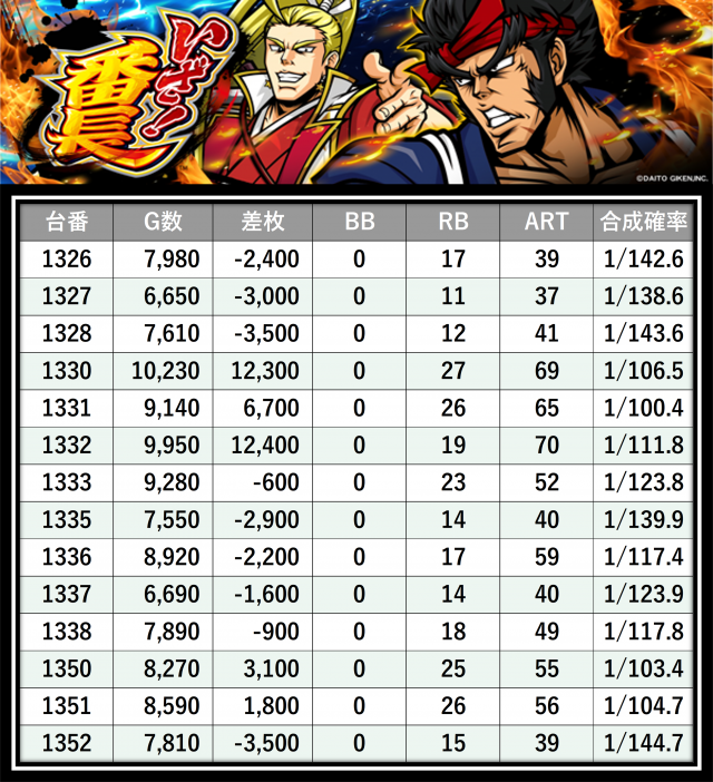 その結果の中から、ぱちタウンが注目すべきポイントを厳選してユーザーにお届け!プレイヤーが楽しんだ一日を下記データにて振り返ってみて欲しい。